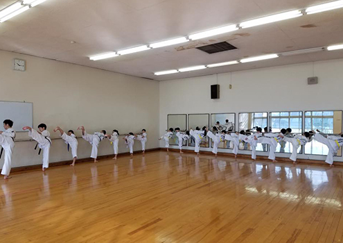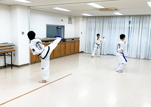 テコンドーの基本動作である突きや受け、型などを練習します。